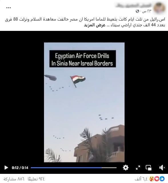 هذا المقطع يعود إلى استعراض المقاتلات العسكرية المصرية فوق القاهرة خلال تخريج دفعات من الأكاديمية العسكرية المصرية عام 2024، ولا يصور تحليق الطائرات العسكرية المصرية فوق رفح مؤخرًا