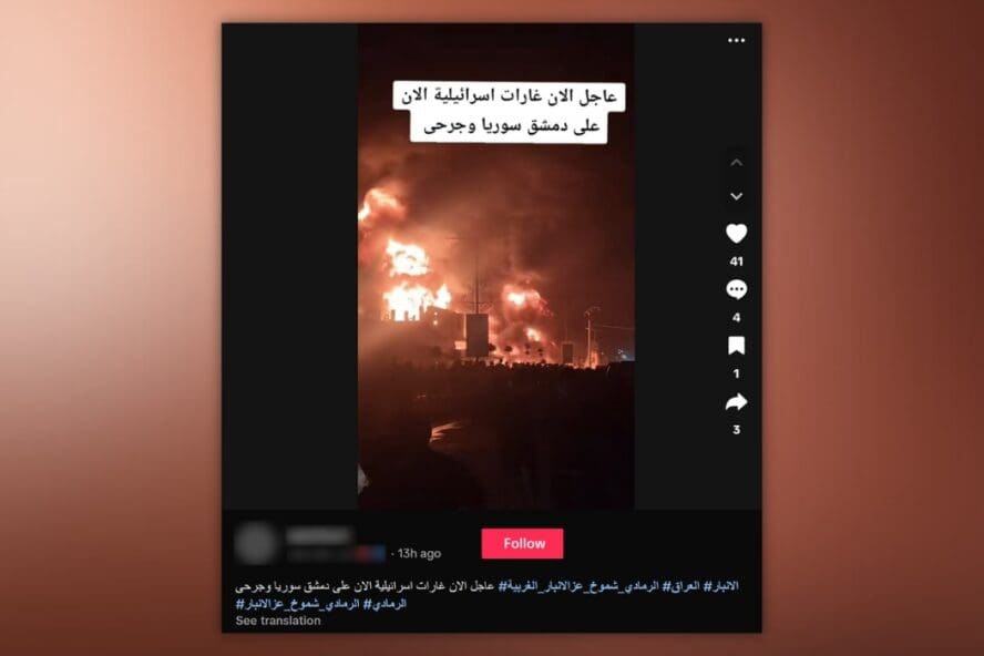 هذا المقطع يعود لحريق في محطة وقود في مدينة الباب في حلب، ولا يصور غارات إسرائيلية في العاصمة السورية دمشق مؤخرًا21 September 2025مضلل