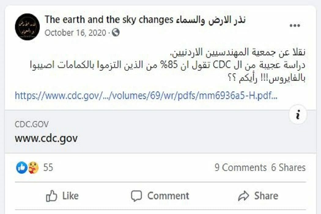 لم يُظهِر تقرير مركز السيطرة على الأمراض الأمريكي (CDC) أن معظم الملتزمين في ارتداء الكمامة يُصابوا بفيروس كورونا