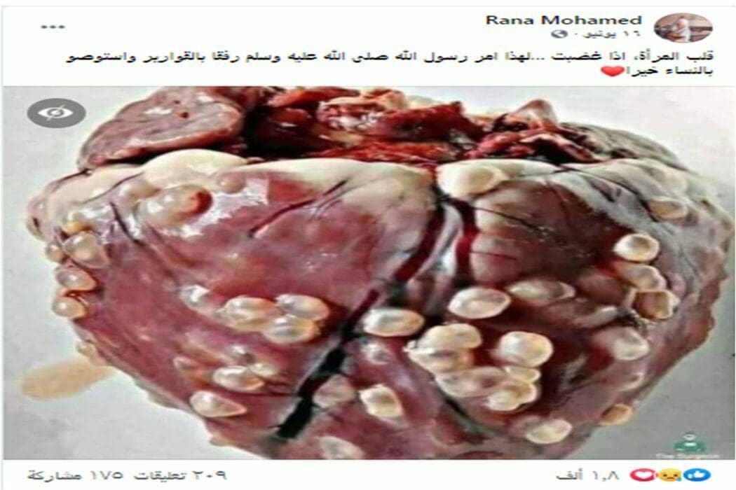 هذه صورة قلب حيوان مصاب بمرض الكيسات المذنبة، وليس قلب المرأة عندما تغضب