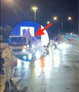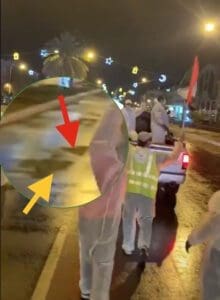 يظهر الفيديو مجموعة من الأفراد يرتدون لباسًا واقيًا في مشهد احتفالي بالشارع العام،