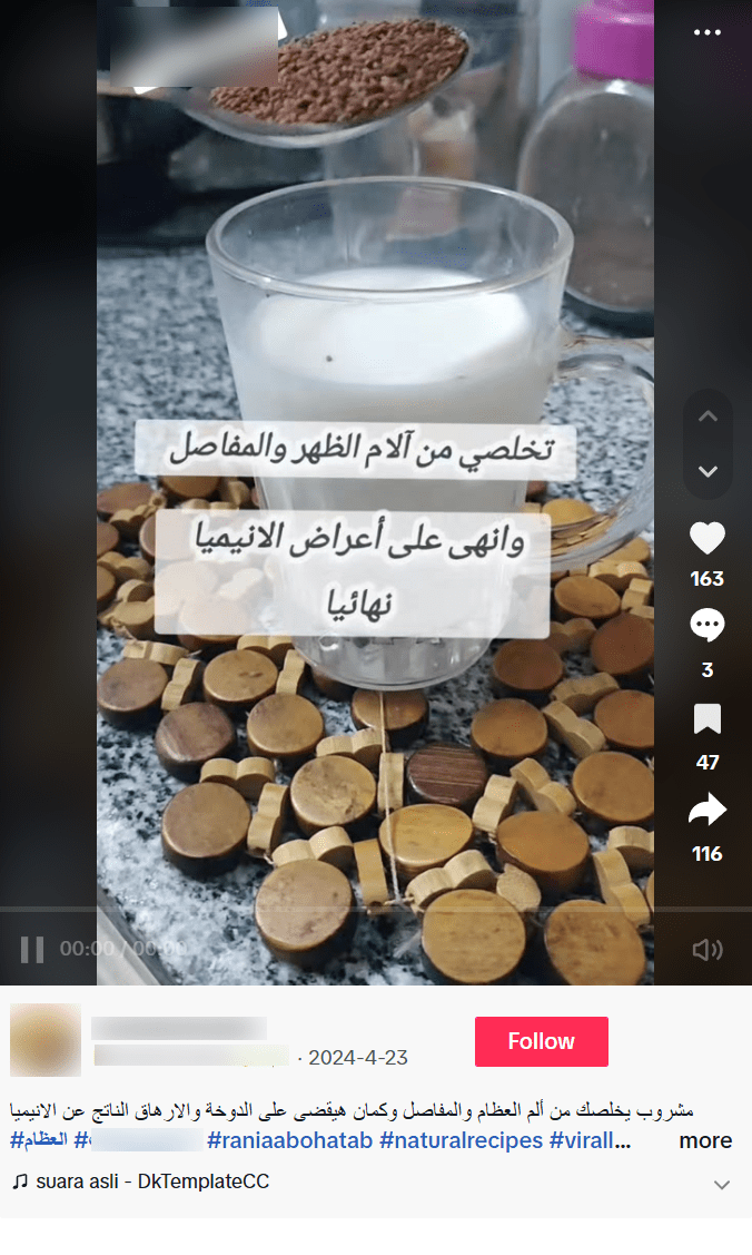هذه التوصيات الطبية مضللة ومحملة بالمخاطر، ولا يمكن علاج أعراض الأنيميا وآلام الظهر والمفاصل باستخدام هذا المشروب