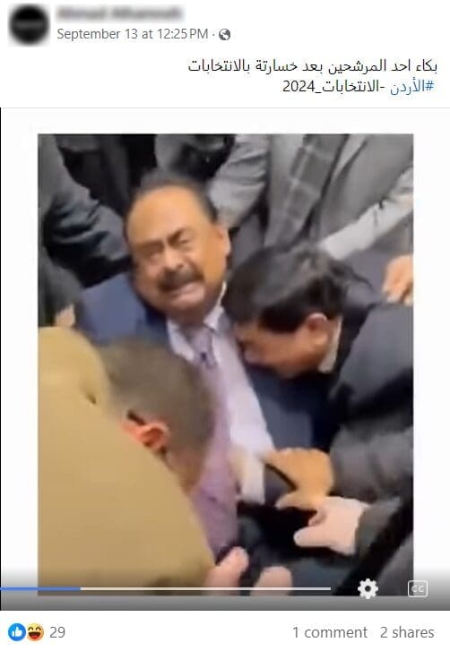 إثر ذلك تداول ناشطون على الفيسبوك مقطعًا يدعون أنه يظهر بكاء أحد المترشحين بعد خسارته في الانتخابات البرلمانية الأردنية،