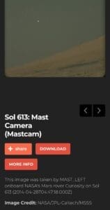 أرفق الموقع بالوصف أن الصور الثلاثة التقطت عام 2014 وليست بحديثة، بكاميرا Mastcam من قبل مركبة Curiosity rover التي أنشأت من قبل ناسا لاستكشاف كوكب المريخ.