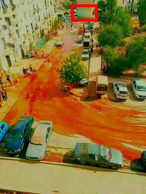 عند التدقيق في الصورة نجد أن علم الجزائر يظهر فيها مرسومًا على جدار أحد الأبنية، ففي الصورة التالية التي تم تعديلها يظهر العلم جليًا بألوانه الأخضر والأبيض والهلال الأحمر