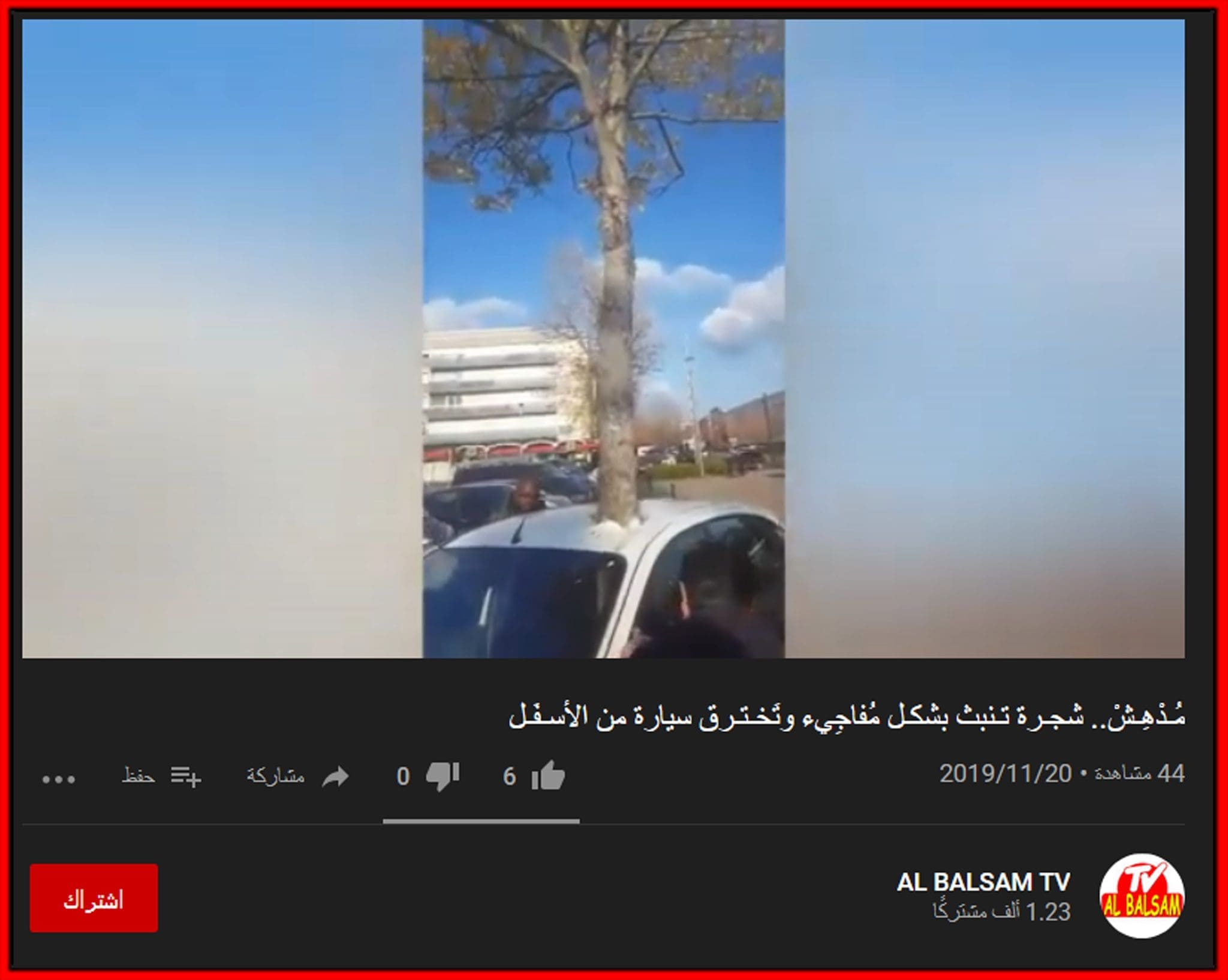 ماتشاهده بالفيديو ليست معجزة ولا شجرة خرقت سيارة وهو في الحقيقة مجرد قطعة فني .