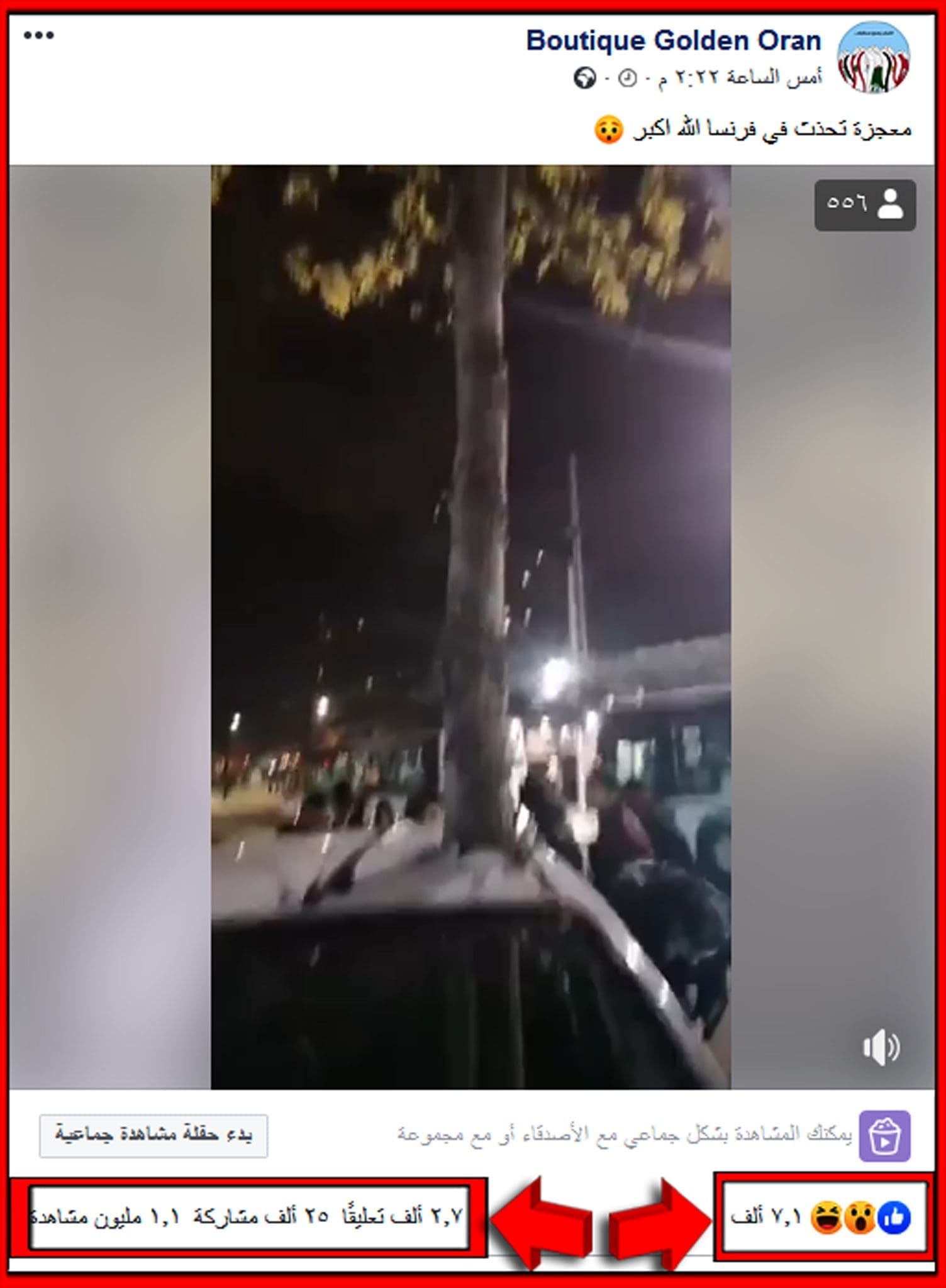 قام حساب Boutique Golden Oran على موقع التواصل الاجتماعي فيسبوك بنشر الادّعاء بتاريخ 19 نوفمبر 2019 وحاز على ما يقارب 7 الالاف تفاعل و25 ألف إعادة مشاركة ونحو مليون مشاهدة (حُذف المنشور بوقت لاحق في اخر تحديث للمقال 31 مايو 202)