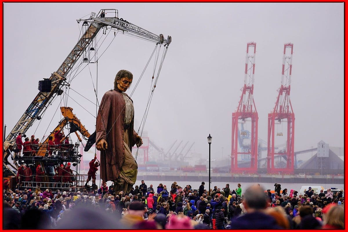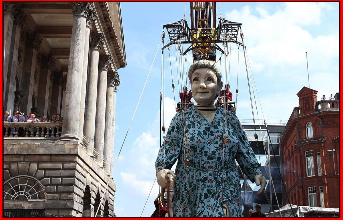 نعم ماتشاهده في الفيديو هو قطعة فنية من فن الشارع تم تصميمها من قبل الشركة الفرنسية Royal De Luxe والمعروفة بأعمالها الفنية في الشوارع مثل هذا العمل وغيره من الأعمال الفنية التي تتحدى المنطق