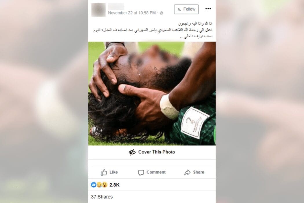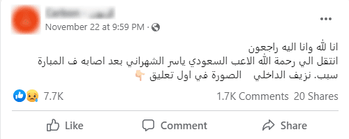 تناقل ناشطون على فيسبوك خبرًا يدّعي ناشروه وفاة لاعب المنتخب السعودي ياسر الشهراني،