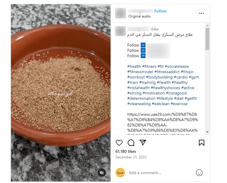 نشرت إحدى صفحات انستغرام فيديو يزعم أنه يمكن علاج داء السكري، وذلك من خلال وصفة من بعض المكونات الطبيعية،