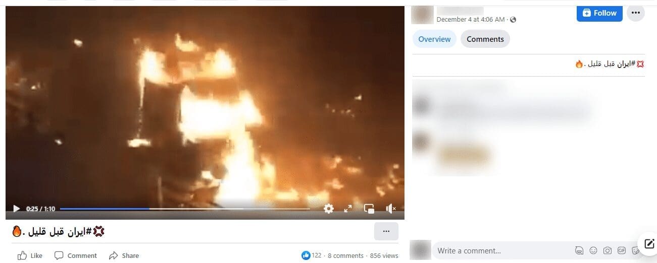 انتشر على موقع التواصل الاجتماعي فيسبوك مقطع فيديو يظهر اعمال شغب ويزعم ناشروه أنه حديث في إيران،