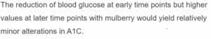 إضافةً لما سبق، بينت إحدى الدراسات أن مستخلص أوراق التوت أظهر انخفاضا ملحوظا في مستوى السكر بالدم بعد تناول الطعام، ولكنه أظهر تأخيراً في انخفاض مستوى السكر كما كان عليه سابقاً، ولم يظهر تأثيراً يذكر على معدل السكر التراكمي في الدم.