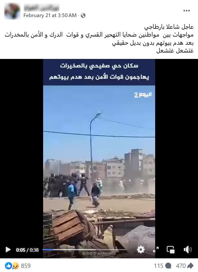 هذ المقطع يصور احتجاجات في المغرب إثر هدم بيوت في حي صفيحي عام 2023، وليس حديثًا