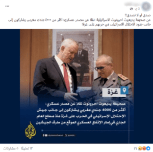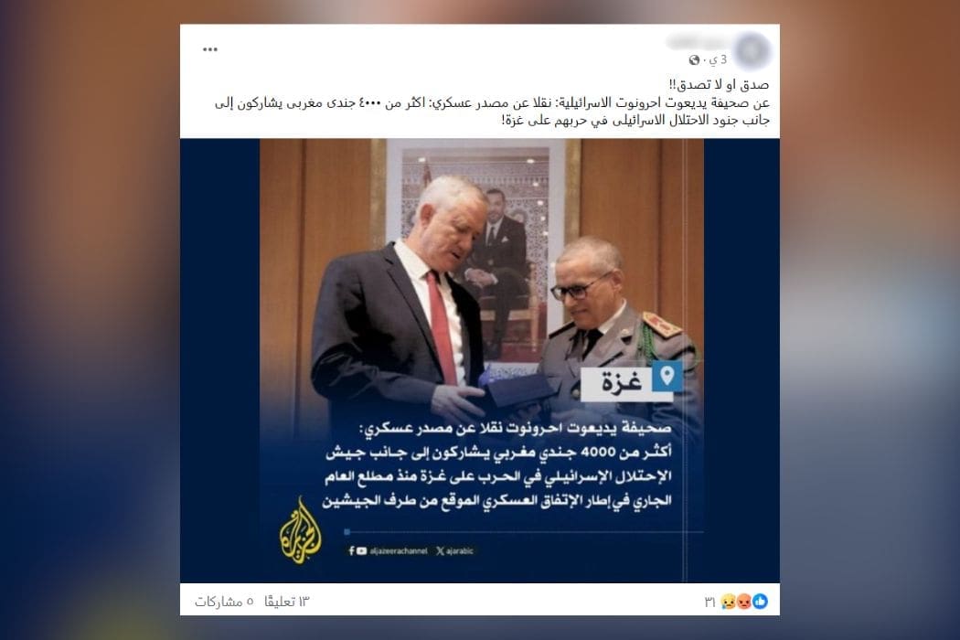 هذا التصميم مفبرك، وقناة الجزيرة لم تنشر هذا الخبر المنسوب لصحيفة إسرائيلية عن مشاركة جنود مغاربة في الحرب في غزة