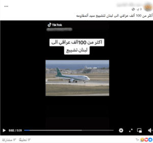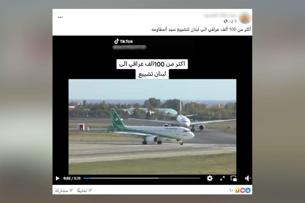 هذا الفيديو متداول منذ عام 2015 لإقلاع طائرة عراقية من مطار أتاتورك في إسطنبول، ولا يظهر سفر آلاف العراقيين إلى بيروت للمشاركة في تشييع حسن نصر الله