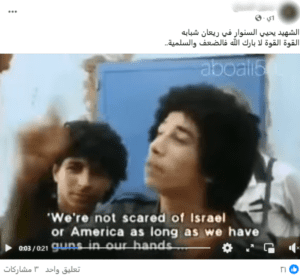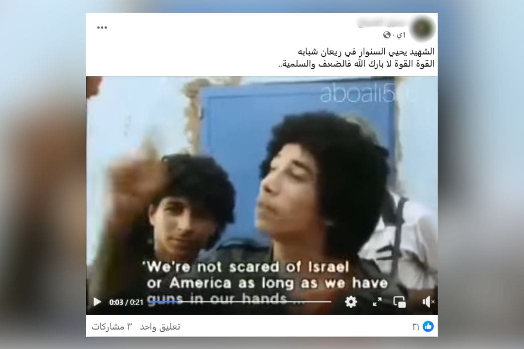 هذا الفيديو لا يظهر يحيى السنوار خلال فترة شبابه، بل يعود لمشاهد صوّرت في لبنان عام 1982 وعرضت في فيلم وثائقي