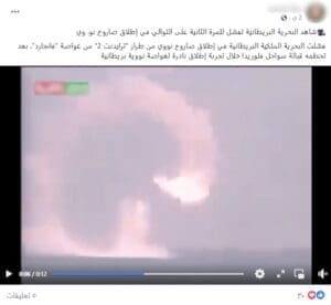 إثر ذلك، تناقل ناشطون على فيسبوك مقطعًا يدعون أنه يصور لحظات إطلاق هذا الصاروخ،