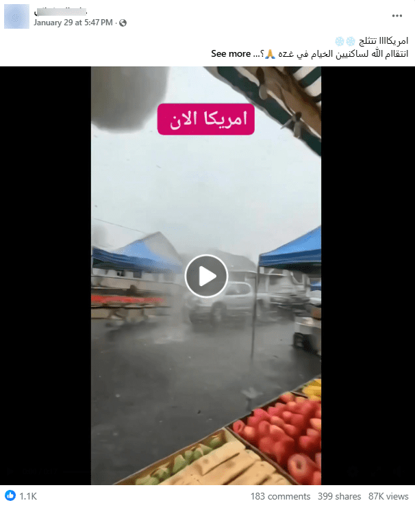 الفيديو لا يعود للعاصفة التي ضربت الولايات المتحدة، بل هو مُصنع باستخدام تقنيات الذكاء الاصطناعي
