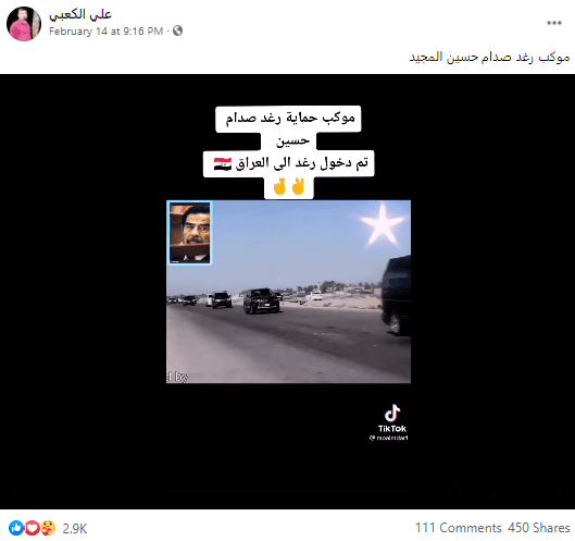 انتشر على مواقع التواصل الاجتماعي فيسبوك وتويتر مقطع فيديو يظهر موكب من السيارات ادعى ناشروه بأنها موكب حماية رغد صدام حسين