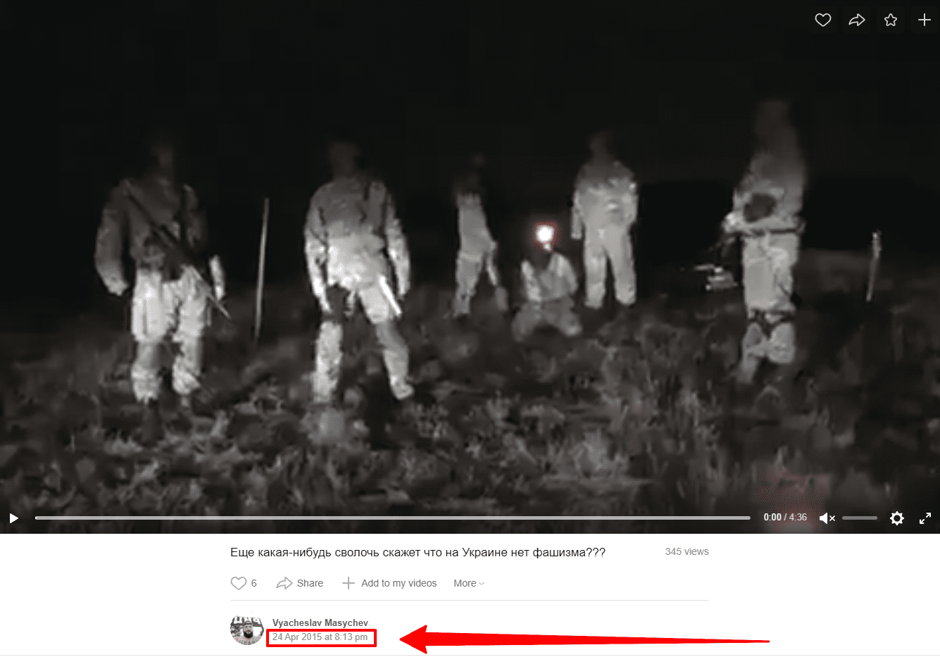 إذ أرشد البحث العكسي بصورة ثابتة في محرك البحث ياندكس إلى أن المقطع متداول منذ عام 2015 على أنه في أوكرانيا،