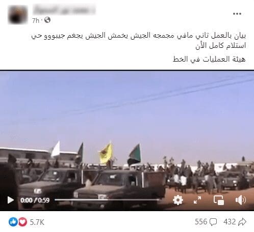 هذا المقطع متداول منذ عام 2016، ولا يظهر استعداد هيئة العمليات السودانية للدخول في الاشتباكات القائمة في السودان