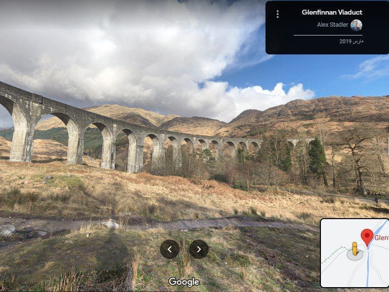 وبالاستعانة بخرائط جوجل، يظهر فيما يلي صورة لجسر سكة الحديد في Glenfinnan والمطابقة لتلك التي في الادعاء.