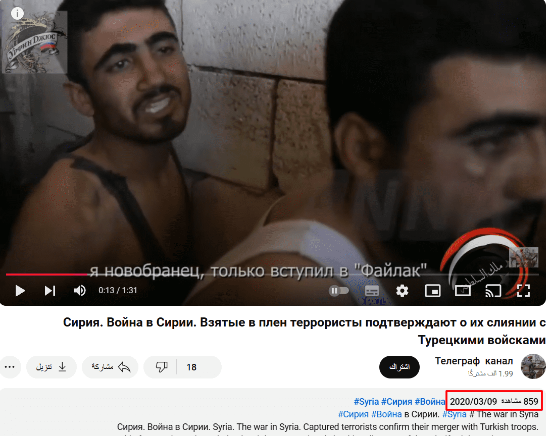 كذلك، نشرت إحدى قنوات يوتيوب المقطع في 13 مارس 2020، على أنه لاعترافات أسرى لدى الجيش السوري تم أسرهم في إدلب آنذاك.