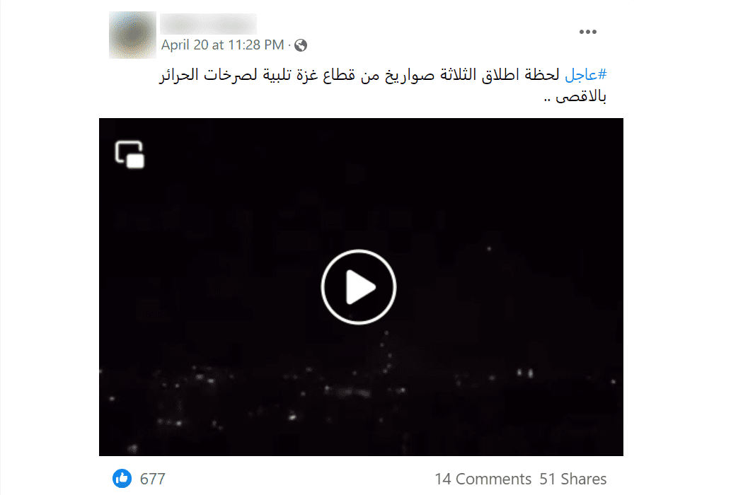 انتشر على مواقع التواصل الاجتماعي مقطعًا يزعم ناشروه أنه يظهر إطلاق ثلاثة صواريخ من قطاع غزة مؤخرًا، فما حقيقة هذا المقطع؟