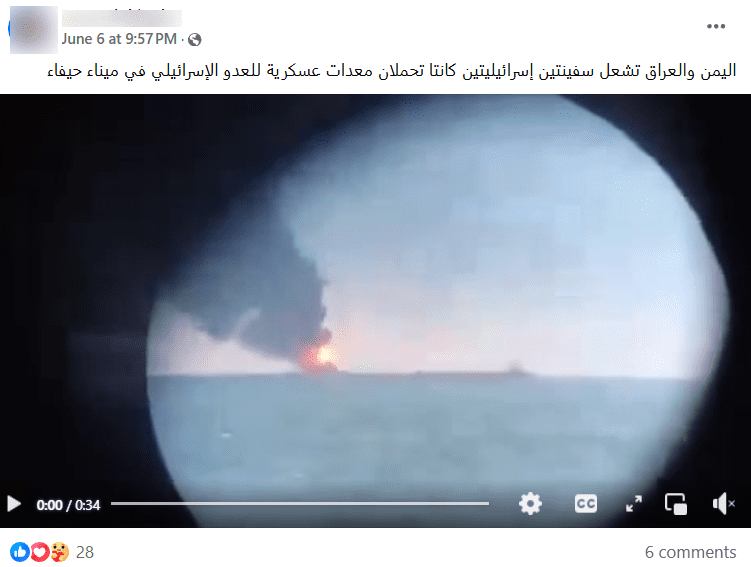 مقطع لاشتعال النيران في سفنٍ عام 2019 يعاد تداوله على أنه للسفن التي استهدفها الحوثيون في ميناء حيفا