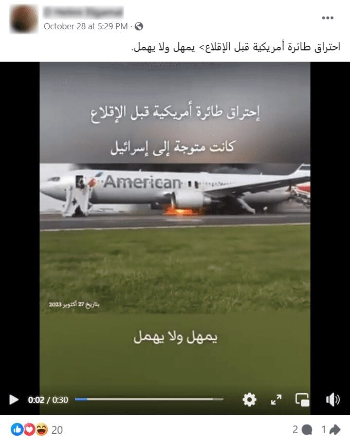 هذا المقطع متداول منذ عام 2016، ويظهر احتراق طائرة أمريكية كانت متجهة نحو ميامي