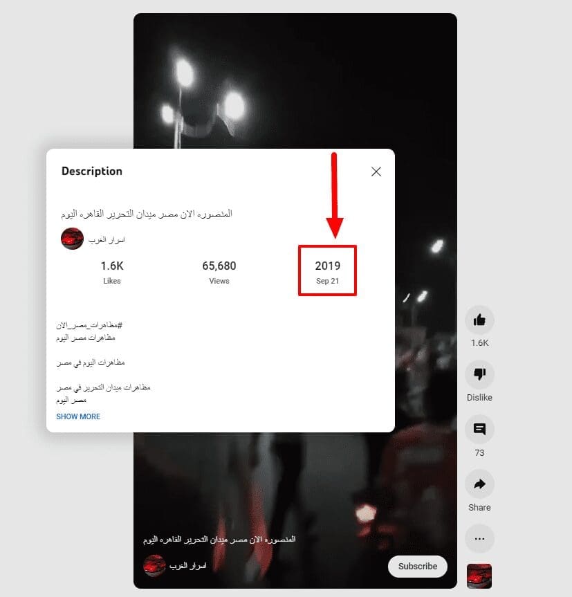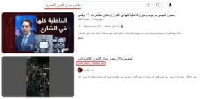 قاد البحث حول “مظاهرة ميدان التحرير المنصورة ” في محرك يوتيوب إلى المقطع ذاته منشورا على يوتيوب في 21 سبتمبر 2019