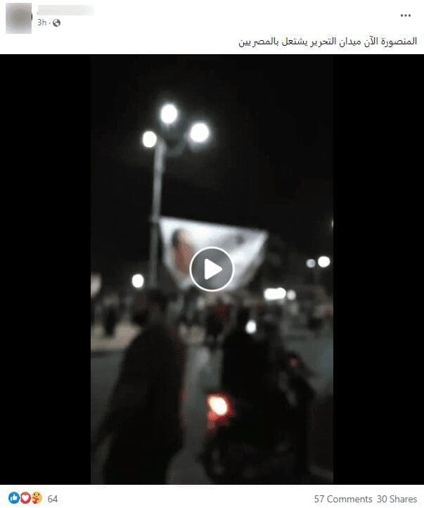 تناقل ناشطون على فيسبوك مقطعًا يزعمون أنه يصور تظاهرة حديثة في ميدان التحرير بمدينة المنصورة المصرية،