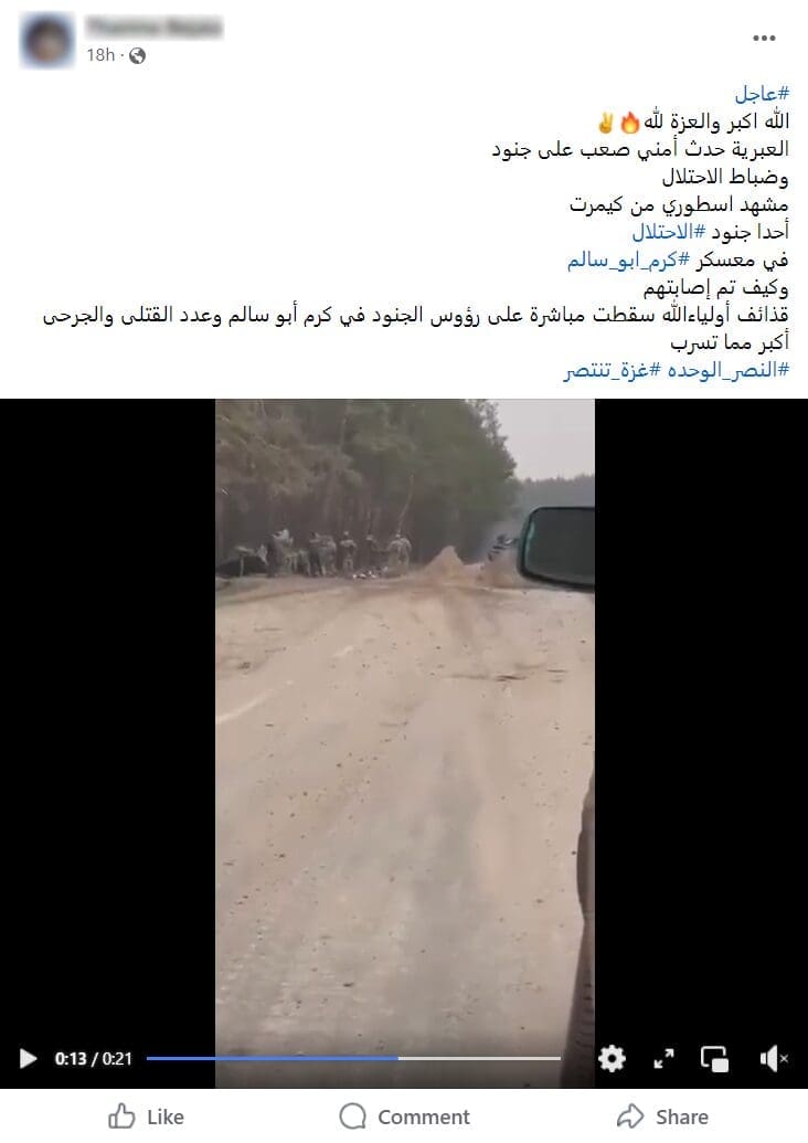 في أعقاب ذلك تداول ناشطون على فيسبوك مقطع فيديو يدعون أنه يظهر استهداف جنود إسرائيليين قرب معبر كرم أبو سالم،