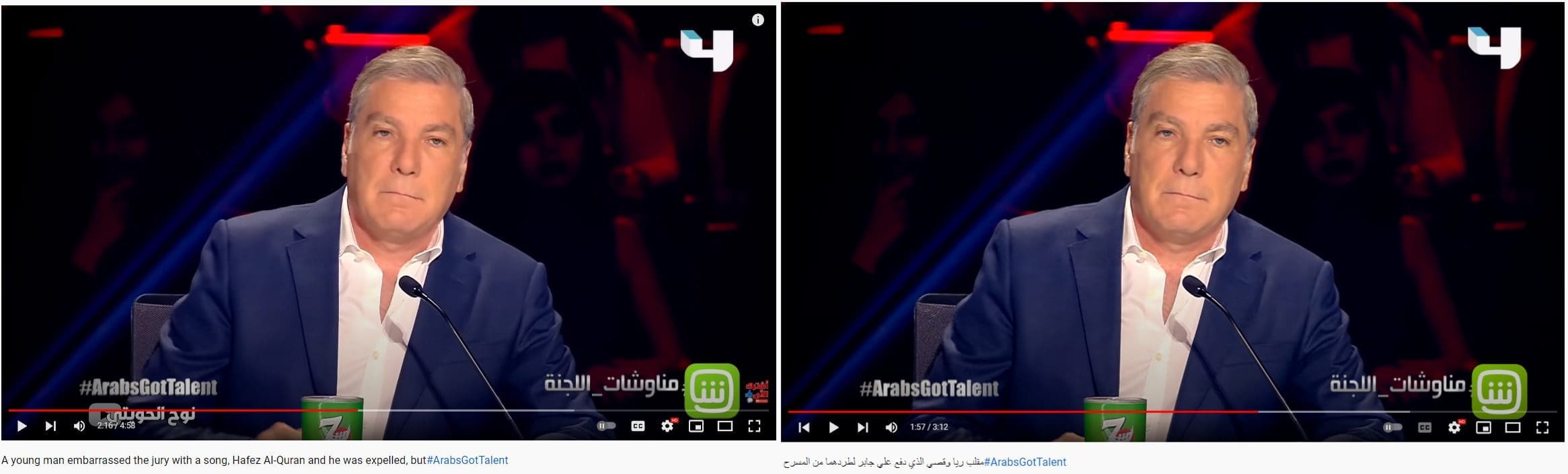 حيث تطابق ملابس لجنة التحكيم مع المشاهد الظاهرة في مقطع الادعاء هنا، وهنا،