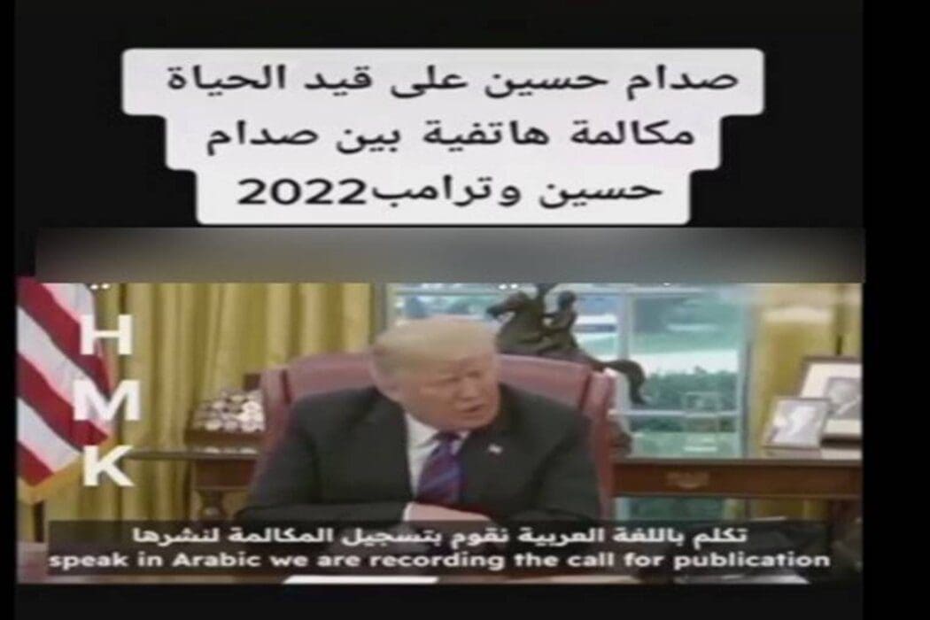 تناقل ناشطون على فيسبوك مقطعًا يزعمون أنه يوثق مكالمة هاتفية بين الرئيس العراقي السابق صدام حسين، ودونالد ترامب،