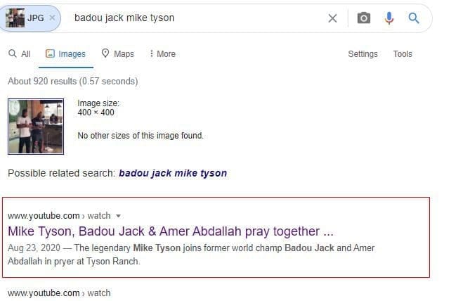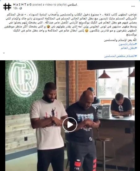 عثر فريق فتبينوا على مقطع كامل للصلاة في اليوتيوب التي جمعت تايسون وبادو والملاكم الأردني عامر المحسيري