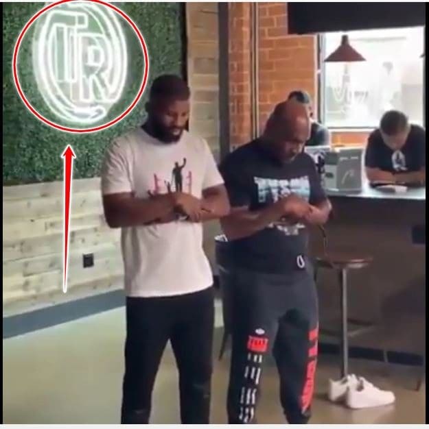 بالتدقيق في المقطع المنتشر للملاكمين يُمكننا رؤية شعار TR وهو علامة مُسجلة للملاكم تايسون Tyson Ranch