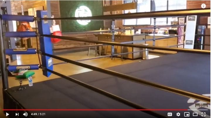 ويمكننا ملاحظة حلبة الملاكمة في الدقيقة 3:49 من المقطع المنتشر على اليوتيوب