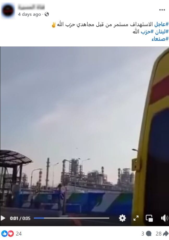 إثر ذلك تداول ناشطون على فيسبوك مقطع فيديو يدعون أنه يظهر استهداف حزب الله مصفاة نفط إسرائيلية،