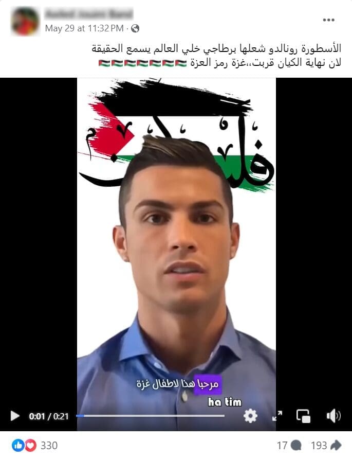 هذا المقطع يصور رسالة وجهها كريستيانو رونالدو لأطفال سوريا عام 2016، وليس لأطفال غزة مؤخرًا