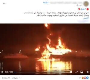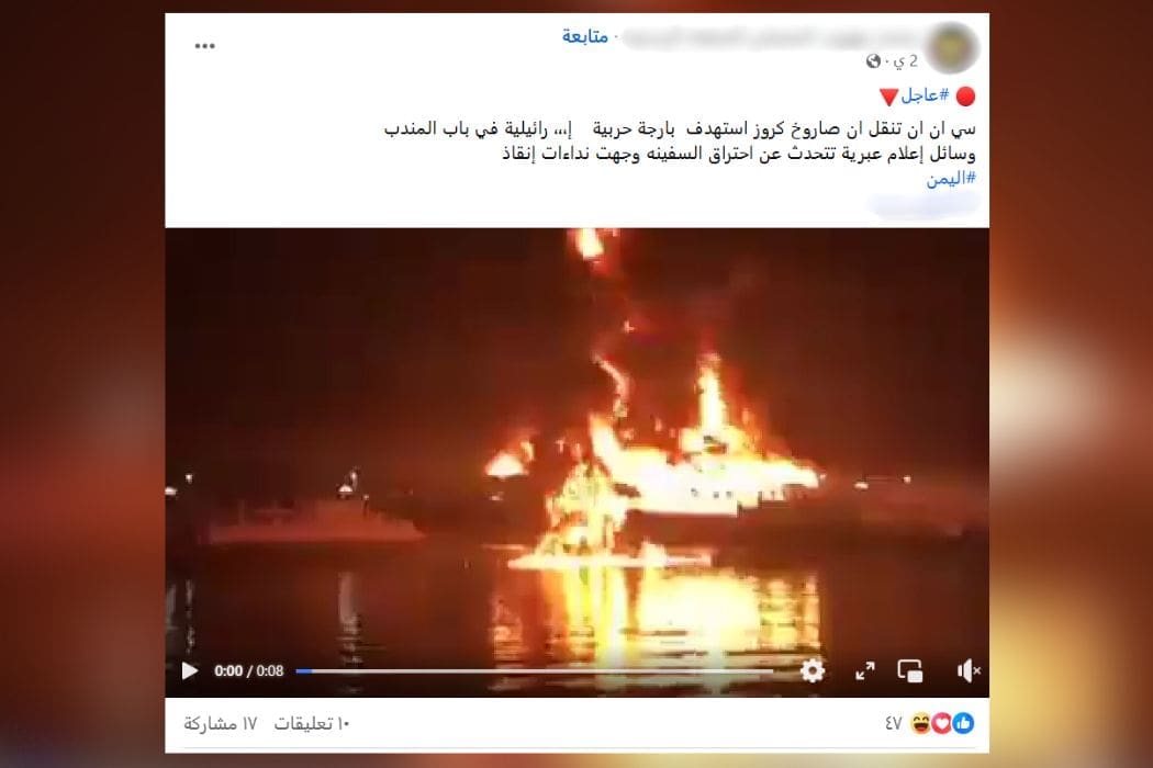 في أعقاب ذلك، تناقل ناشطون على فيسبوك مقطعًا يدّعون أنه يظهر احتراق بارجة إسرائيلية بعد أن استهدفها الحوثيون،