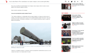 من النتائج التي ظهرت أيضًا في البحث العكسي في جوجل (الذي تعرّف على الصورة فورًا باسم الصاروخ (rs 28 sarmat range ) الموقع الإخباري Global News