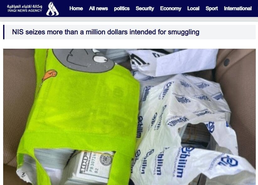 بعنوان «جهاز المخابرات الوطني ضبط أكثر من مليون دولار كانت معدة للتهريب»