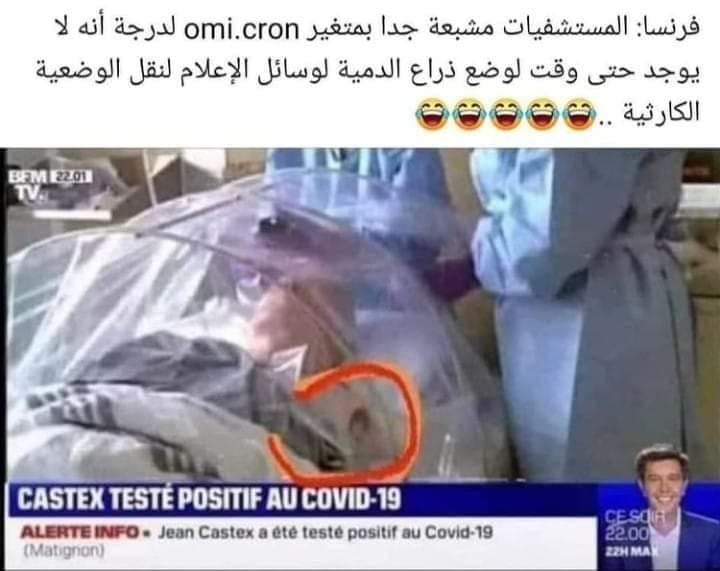 «فرنسا: المستشفيات مشبعة جدا بمتغير omi.cron لدرجة أنه لا يوجد حتى وقت لوضع ذراع الدمية لوسائل الإعلام لنقل الوضعية الكارثية».