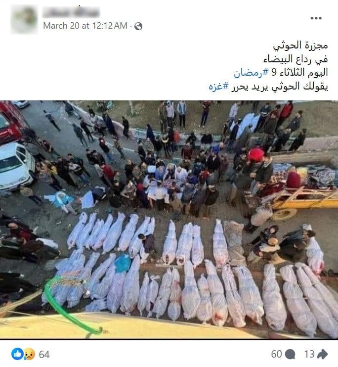 إثر ذلك تداول ناشطون على الفيسبوك صورة يدعي ناشروها أنها تظهر جثامين ضحايا هذا التفجير في اليمن،