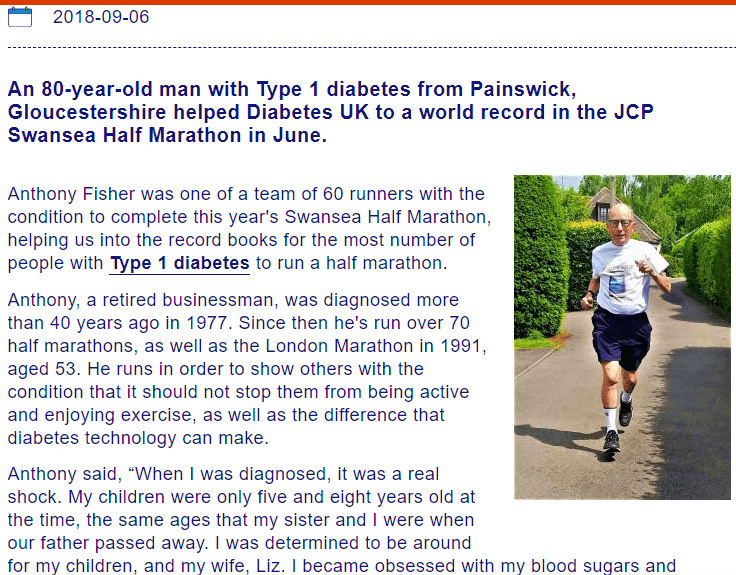 وقام أنتوني فيشر بنشر قصته مع داء السكري على موقع PMC ولم يذكر إصابته بالسرطان.