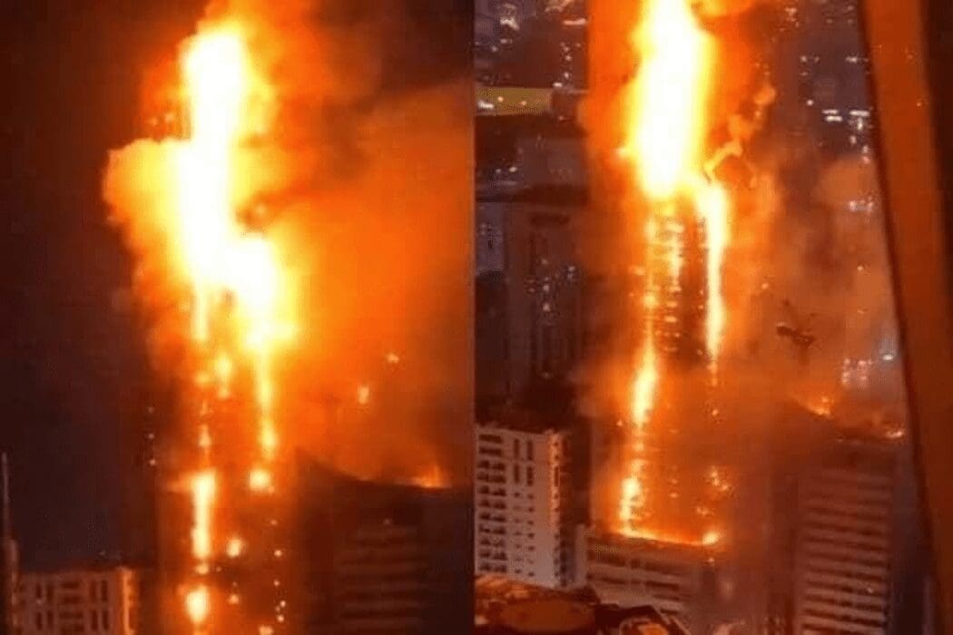 بمتابعة البحث في محرك غوغل عن حادثة حريق برج في الشارقة،