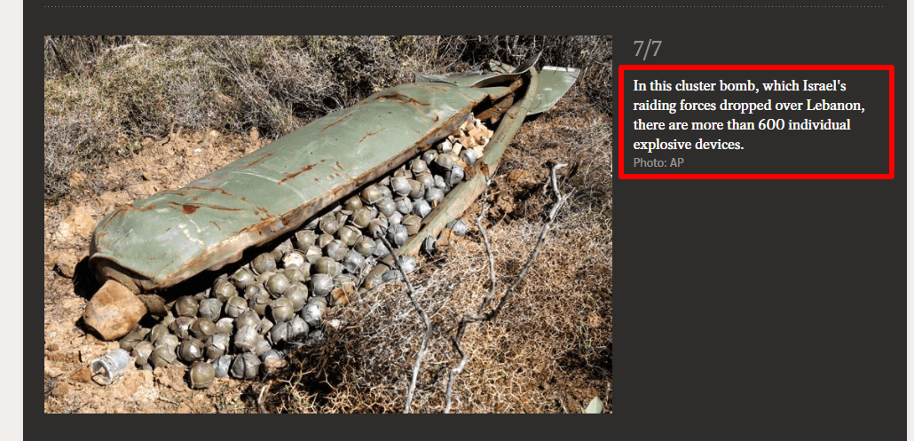 في هذه القنبلة العنقودية التي أسقطتها القوات الإسرائيلية على لبنان يوجد بها أكثر من 600 عبوة ناسفة