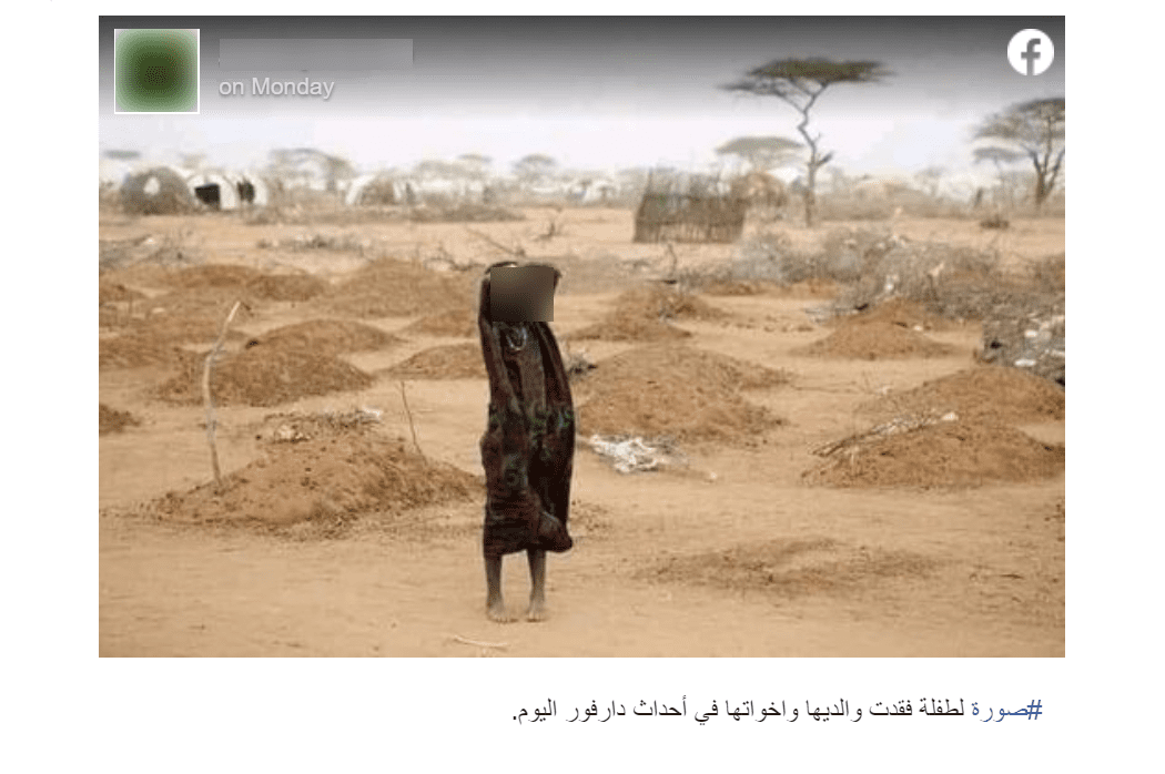 انتشرت على مواقع التواصل الاجتماعي صورة يزعم ناشروها أنها تظهر طفلة فقدت عائلها في الاحداث الأخيرة التي شهدها إقليم دارفور.