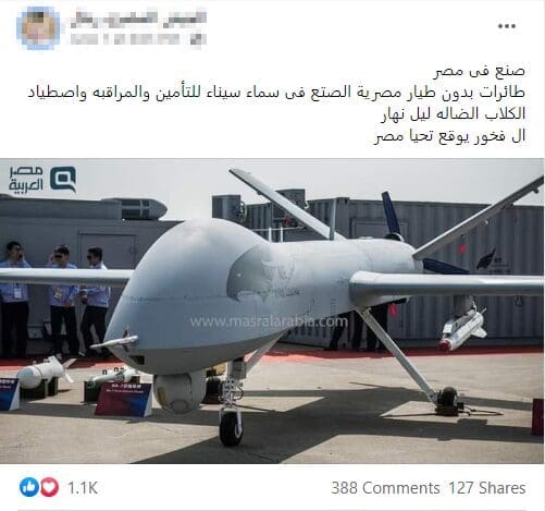 هذه الصورة ليست لطائرة مسيرة مصرية الصنع، بل لطائرة مسيرة صينية